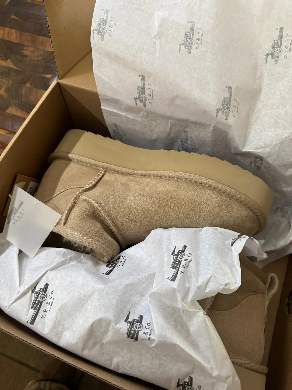 Introducing the latest fashion trend in comfort and style: the Lady Scuff Platform Sole Ugg. Elevating your casualwear game to new heights, these luxurious slippers boast a chic 4cm platform sole, adding a fashion-forward edge to your everyday look.