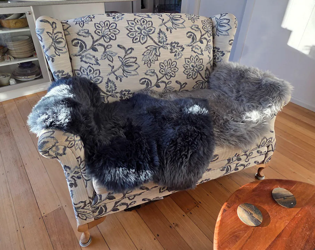 We also recommend placing the sheepskin rugs out of direct sunlight or moving them around on a regular basis. Direct strong sunlight and UV may cause colour dyed sheepskin to change in colour over time.